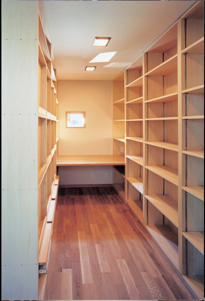 趣味の写真用暗室で現像・焼付けが出来ます。  右側は書庫兼読書室です。
